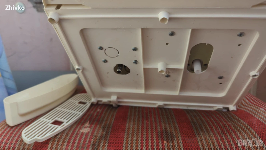 Диспенсърът е визуално запазен, както се вижда на снимките. Всички системи за нагряване работят, но има техническа забележка — уредът тече от долната страна. Вероятно става въпрос за разхлабена връзка или маркуч, който трябва да бъде уплътнен или подменен. Подходящ е за човек, който има умения да го ремонтира, или за използване за части.