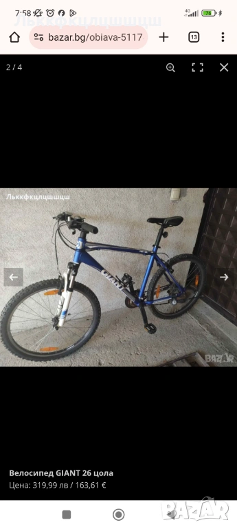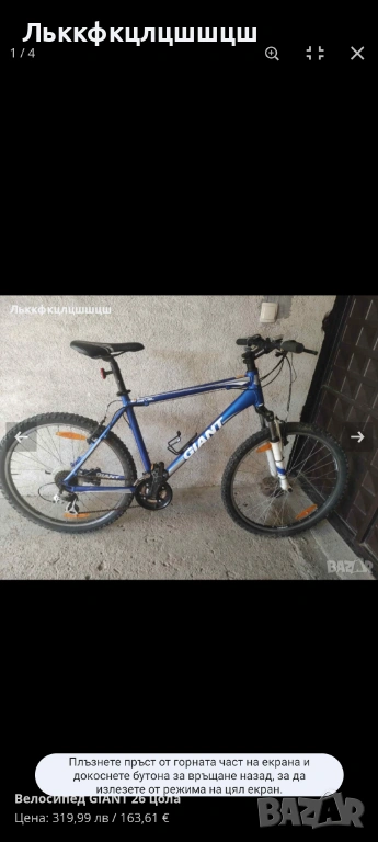Велосипед GIANT 26 цола, снимка 1 - Велосипеди - 53843876 Велосипед GIANT 26 цола, снимка 2 - Велосипеди - 53843876 Велосипед GIANT 26 цола, снимка 3 - Велосипеди - 53843876 Велосипед GIANT 26 цола, снимка 4 - Велосипеди - 53843876 1/4