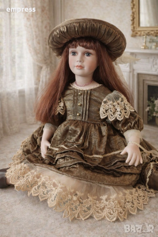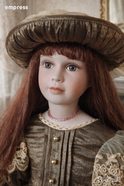 порцеланова кукла на английската компания Alberon с височина около 55 см. Куклата има порцеланов бюст и подвижна глава, изработена с характерното за марката фино изражение и внимателно моделирани черти на лицето. Очите са изразителни, а дългата коса в топъл кестеняв оттенък рамкира лицето и допълва изисканото ѝ присъствие.