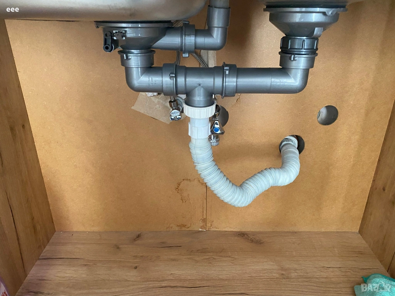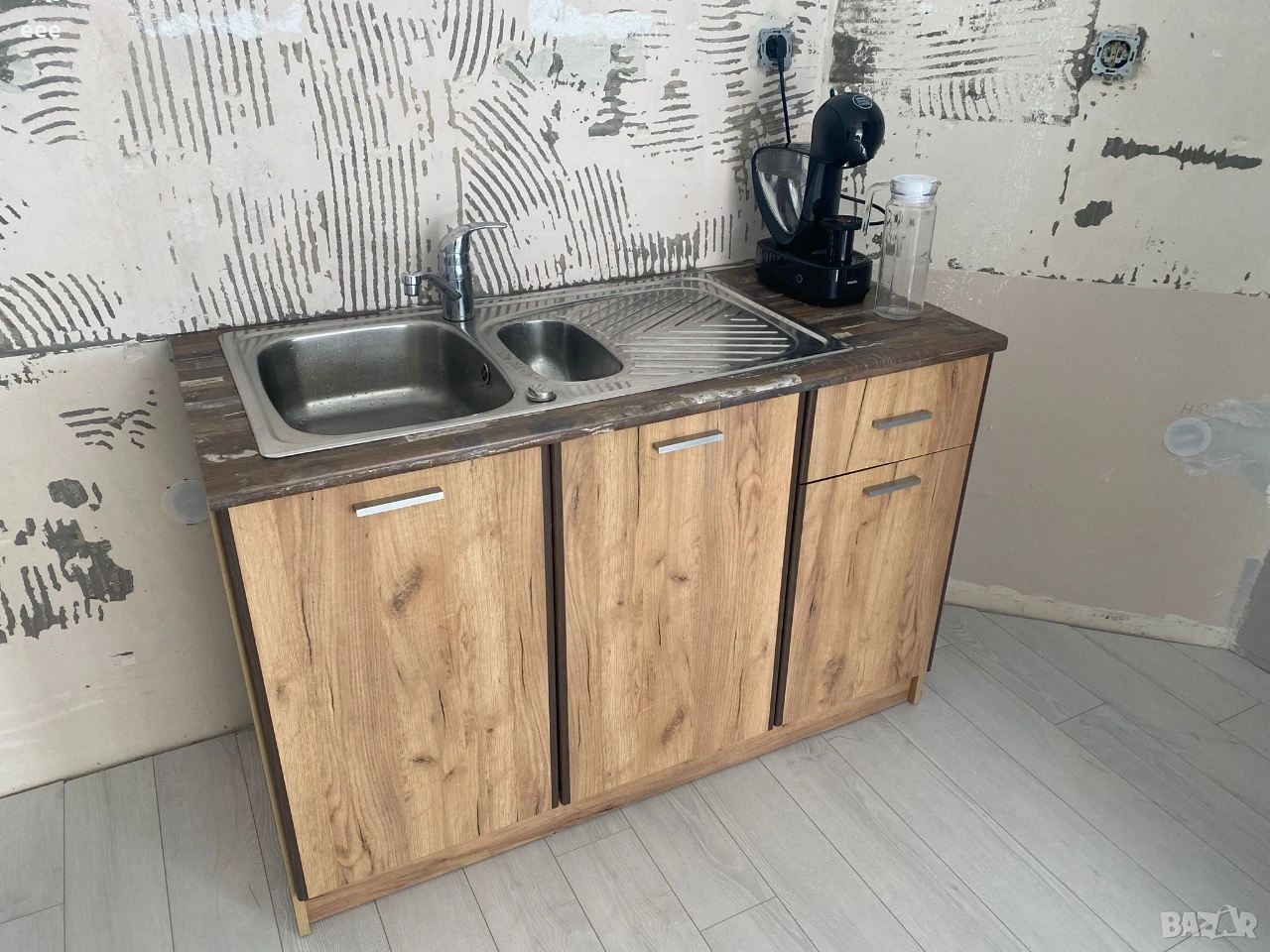Кухня 1,30 комплект горен, долен шкаф, мивка алпака и батериу Grohe. Шкафа на места има забележки.