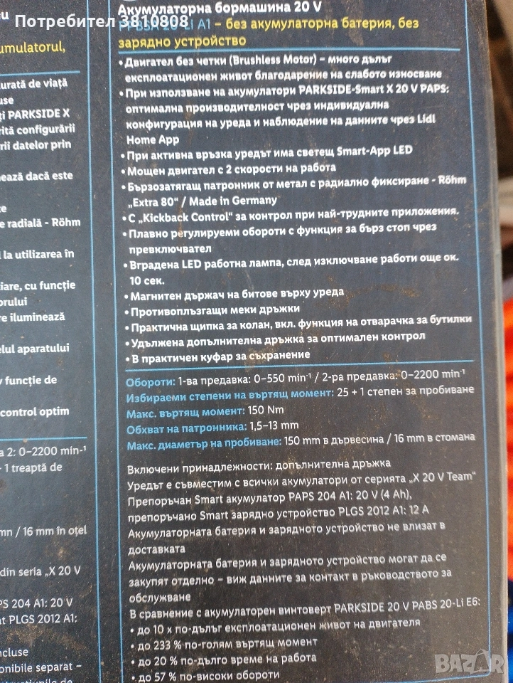 Акумулаторна бормашина 20V → Обява 53844671