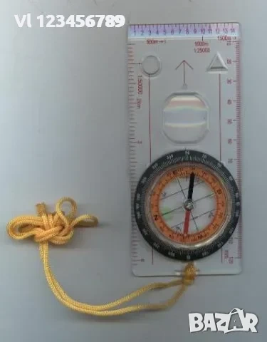 Стабилизиран компас,тип бусола, удобен за туристическо ориентиране ( върху карта ) , ползван и като учебен и тренировъчен модел при скаути, училища и т.н.