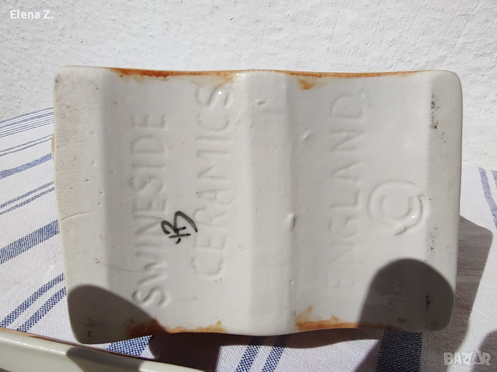 Това е винтидж чайник, с още старата топла маркиоровка на производителите. Подписан е от художника, и е с етикет - Направено в Англия.