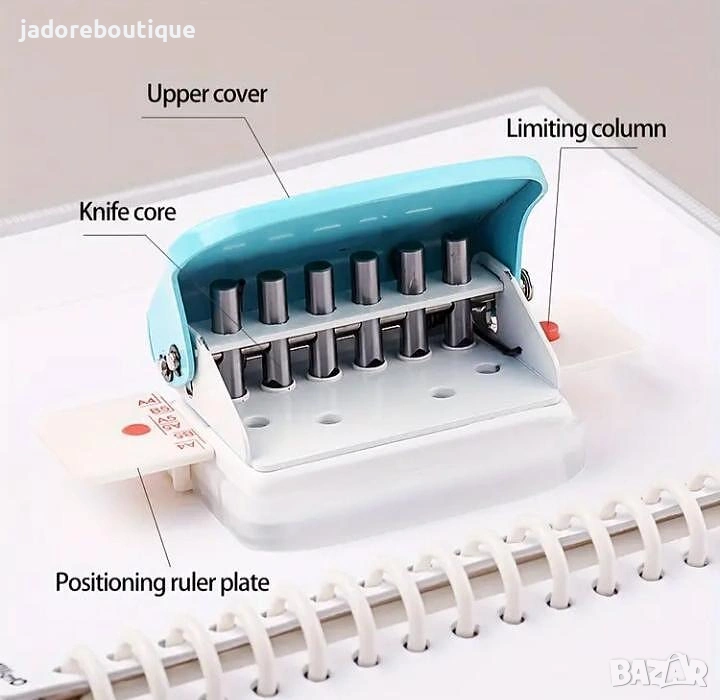Малък, компактен пънч перфоратор с 6 дупки, за перфориране на планери, рецептурници, албуми, тефтери и други.