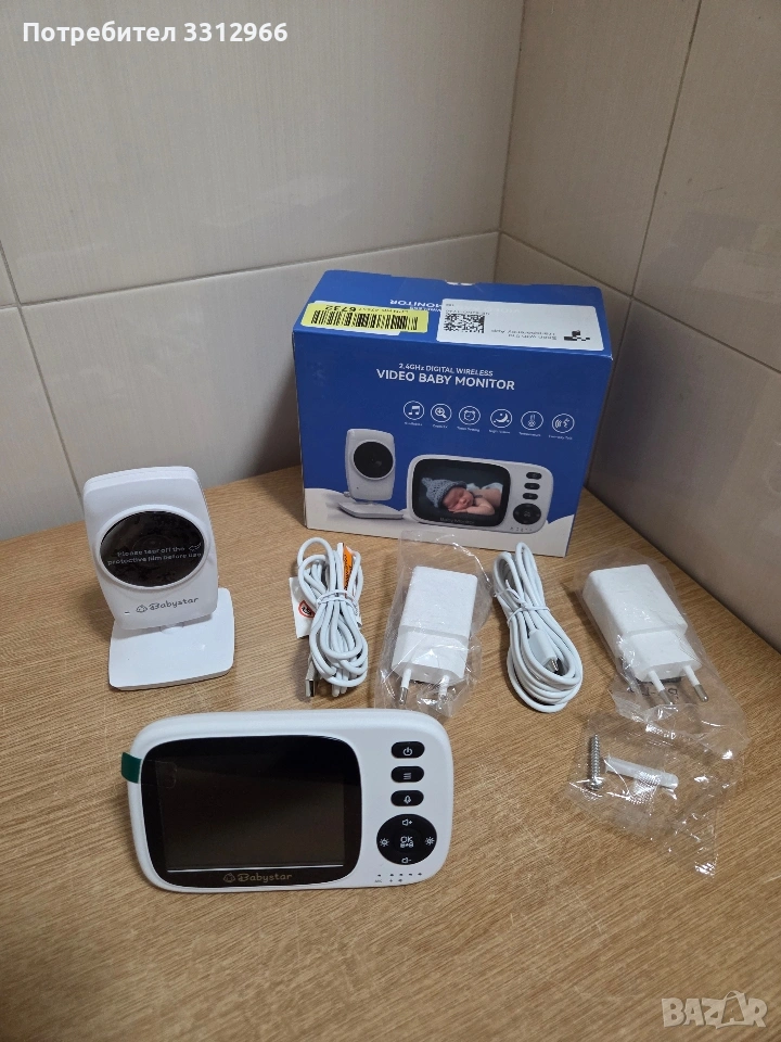 Чисто нов видео бебефон Babystar с камера, работещ на честота 2.4GHz.