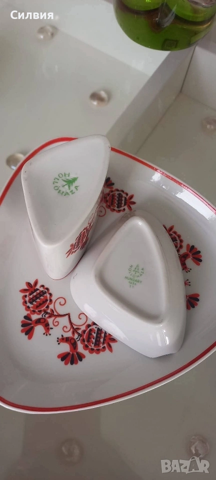 Ретро порцелан от Унгария, 4️⃣малки съдчета. Порцеланът Hollóháza се произвежда от Порцеланова фабрика в Hollóháza , Унгария. Фабриката е основана през 1777 г., първоначално като стъкларска фабрика. Това е една от най-старите останали, сега държавна фабрика за порцелан в Унгария. Обща цена 2️⃣5️⃣€ 48,90лв ⊱❥─❥⊱💜✿⊱╮☆♪ ░L░o░V░e░❥─❥⊱💜✿⊱╮💜☆♪ღ💜ღ꧂ღ Hollóháza е една от най-старите фабрики за порцелан в Европа, основана през 1777 г. Първоначално е била фабрика за стъкло, но през 1831 г. е превърната в манифактура за керамика, използвайки местна каолинова глина. Фабриката е известна със своите ръчно изработени порцеланови изделия с традиционни фолклорни мотиви. Продуктите включват вази, сервизи за хранене и декоративни елементи.