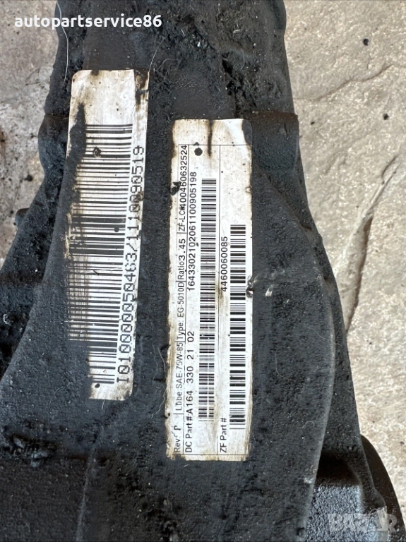 Преден диференциал за Mercedes ML W164 с предавателно число 3.45, номер A1643302102, оригинална част (OEM), за двигател 3.0 CDI, 2011 г.