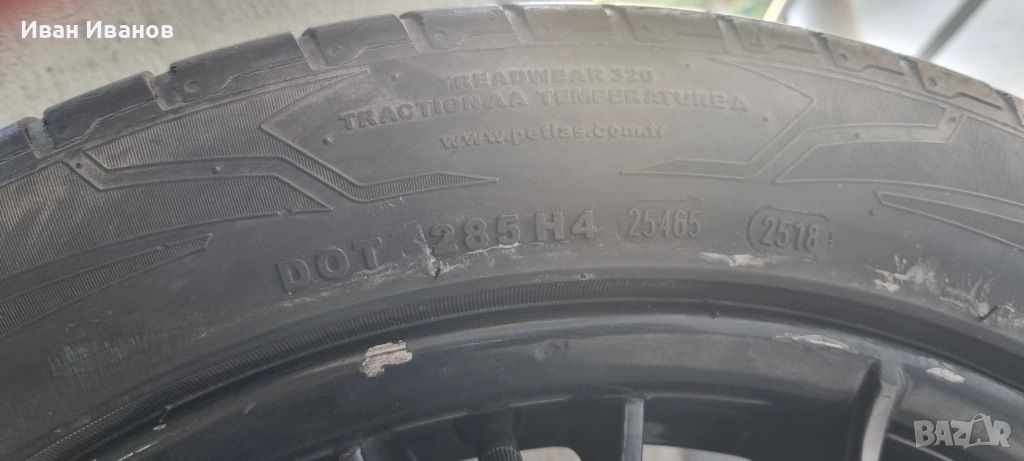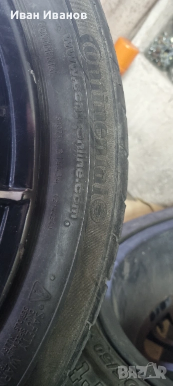 Летни гуми 17 цола в добро състояние, дот 2018 , равномерно изнесени, без лепенки, кривина и т.н. Гумите са 2 бр. Континентал и 2 бр. Петлас. 2-те са с грайфер 4,5-5 мм, а другите 2 гуми с 5-5.5 мм. Продават се само гумите, без джантите с които са снимани.