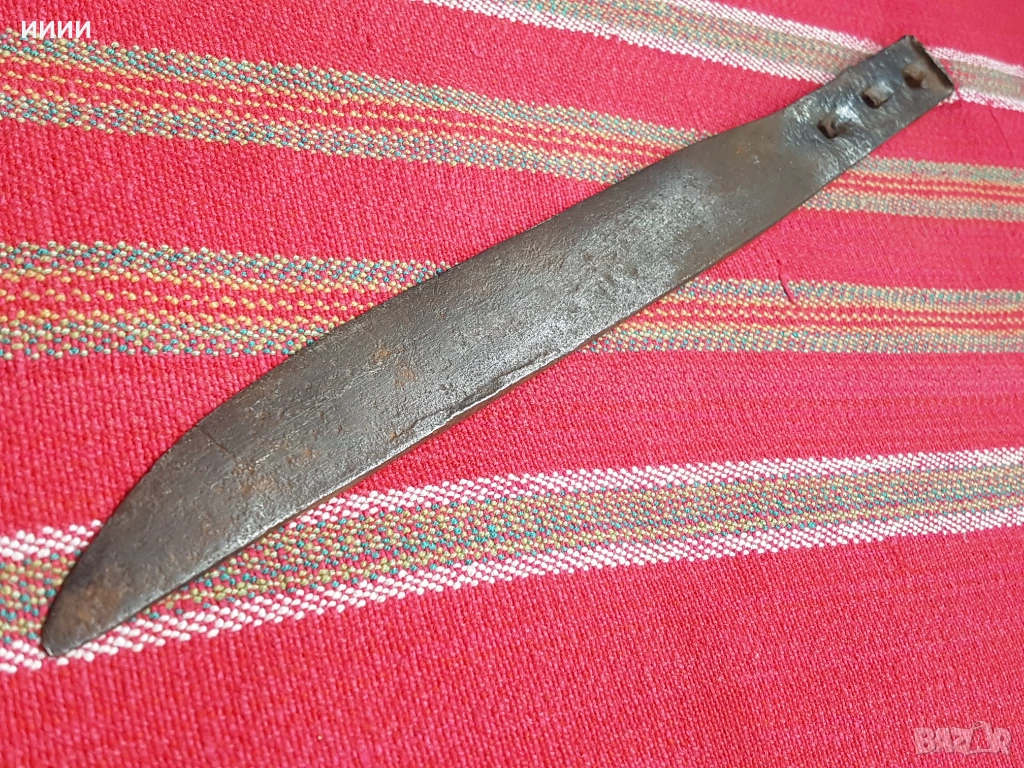 Изкован през втората половина на 19-ти век,с различна дебелина на острието 6 - 6,5 мм. Дръжката му е паднала във времето и има нужда от нова.
