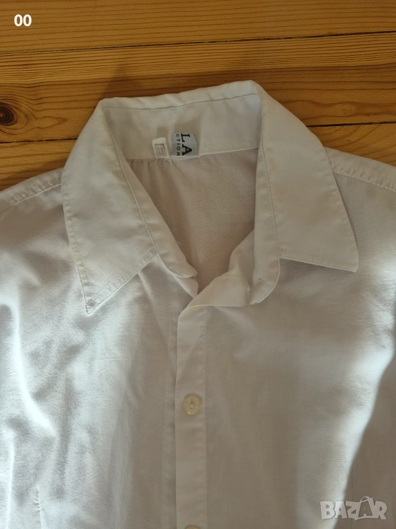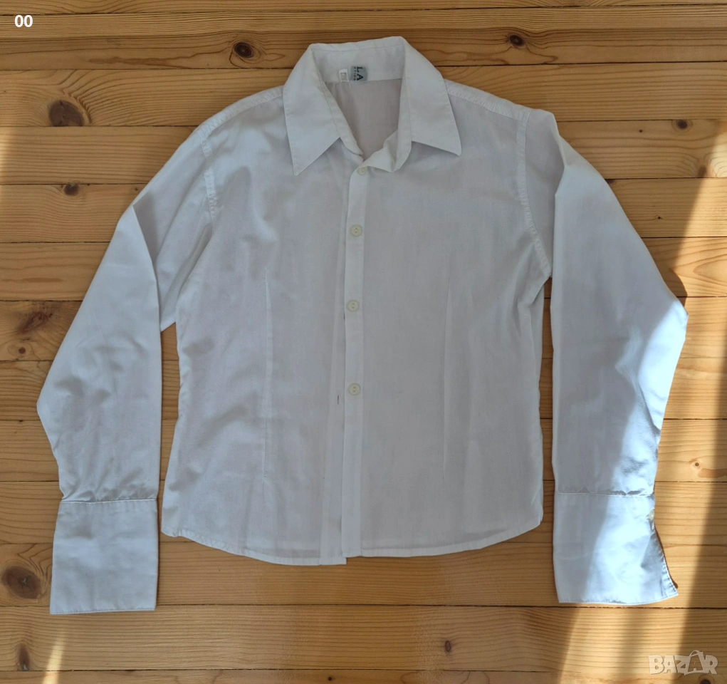 Памучна дамска запазена риза с дълъг ръкав в бял цвят.
