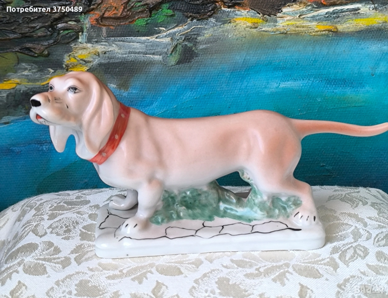 Порцеланова фигурка на куче → Обява 53846058