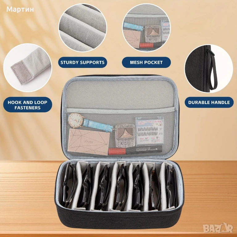 · Може да се съхраняват до 7 броя очила