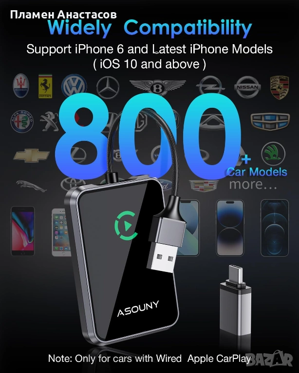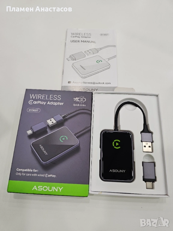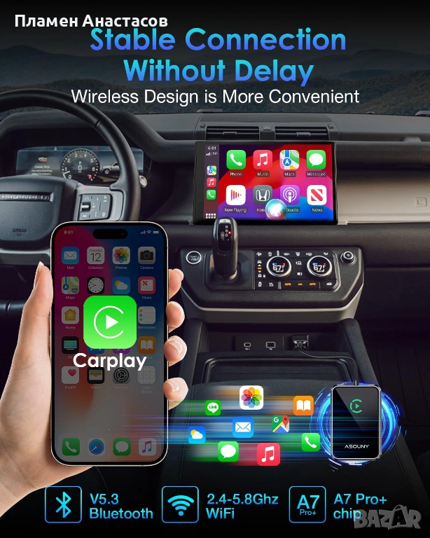 ASOUND BY969T Wireless CarPlay Adapter е практичен аксесоар за всеки автомобил с CarPlay, който позволява по-удобно и модерно използване на смартфона в колата без необходимост от кабел.