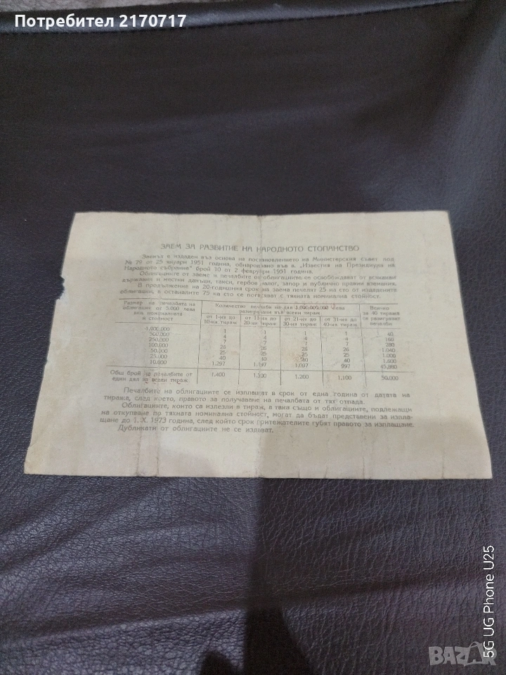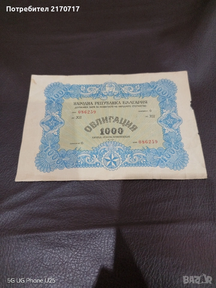 Облигация 1000 лева 1951 година → Обява 53846553