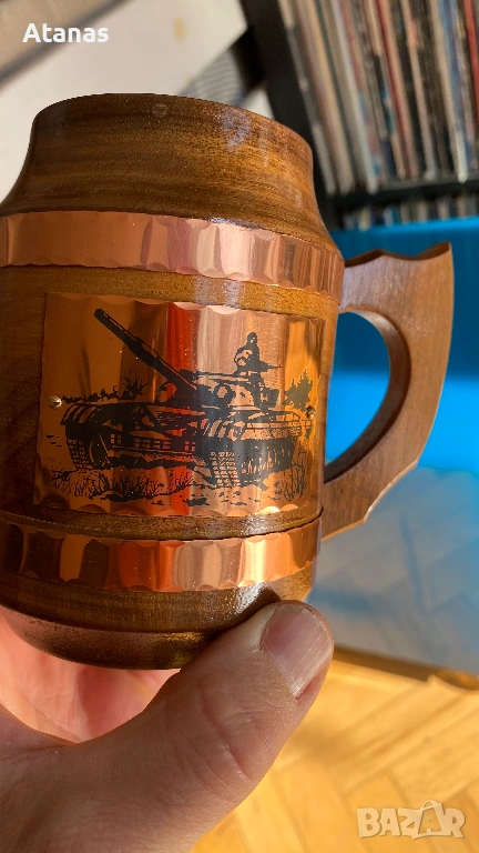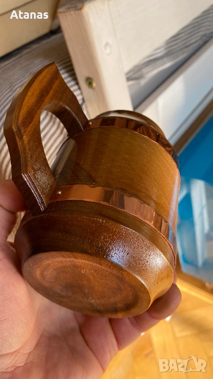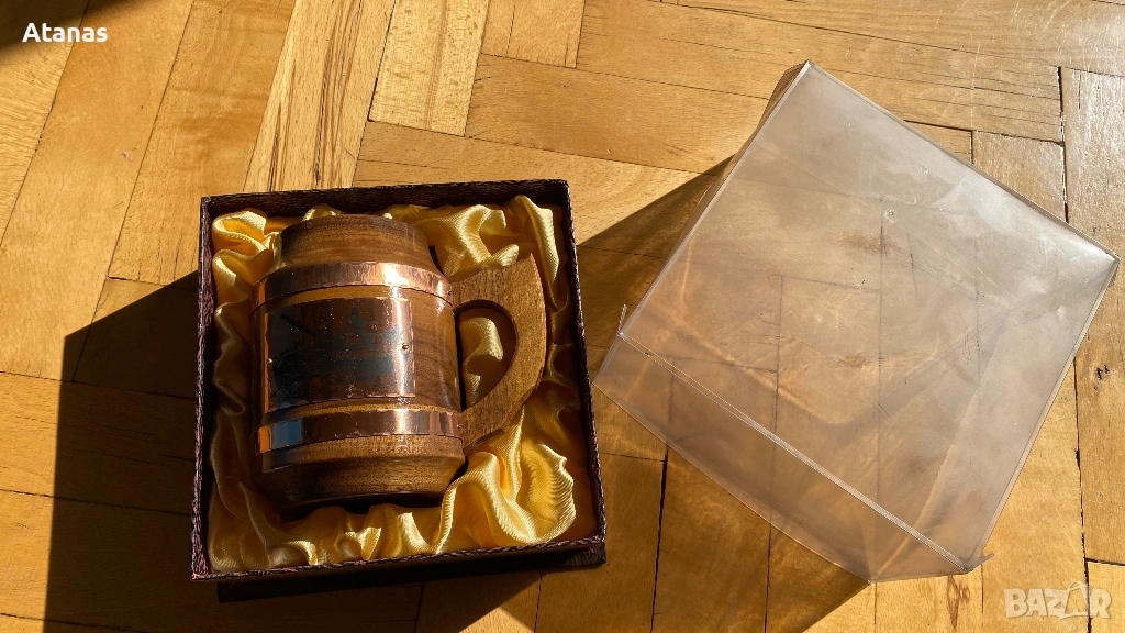 Антикварна дървена чаша с меден обков → Обява 53846701