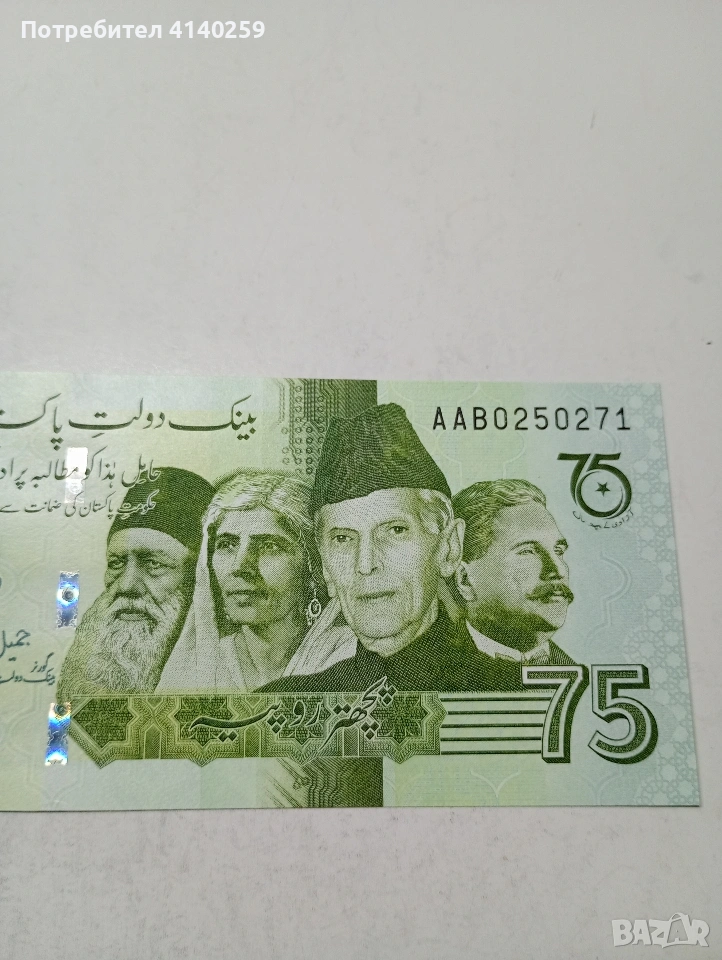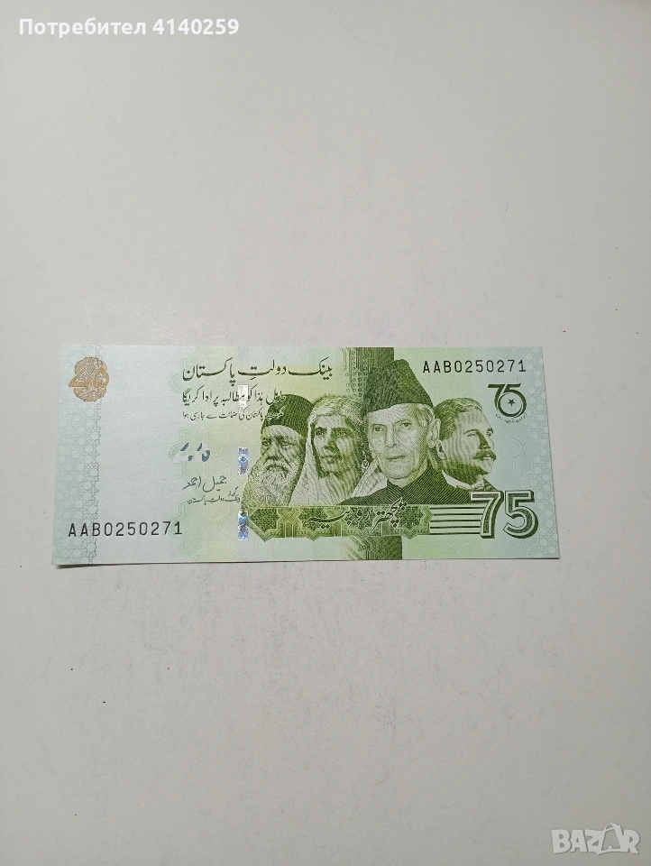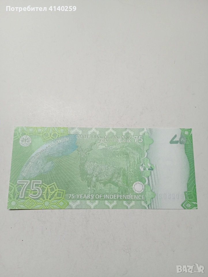 ПАКИСТАН БАНКНОТА 75 РУПИИ 2022Г СЪСТОЯНИЕ НОВО ПОЛУЧАВАТЕ СНИМАНАТА БАНКНОТА РАЗГЛЕДАЙТЕ ДРУГИТЕ МИ ОБЯВИ ДА КОМБИНИРАТЕ ДОСТАВКА ЕКОНТ ЗА ВАРНА ЛИЧНО