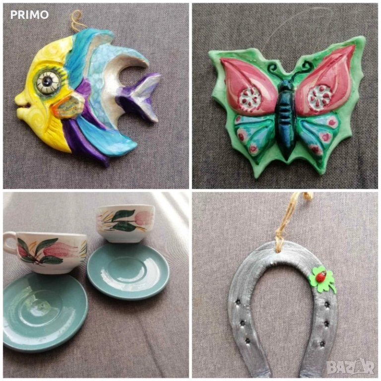 Сувенири от бяла и кафява керамика.