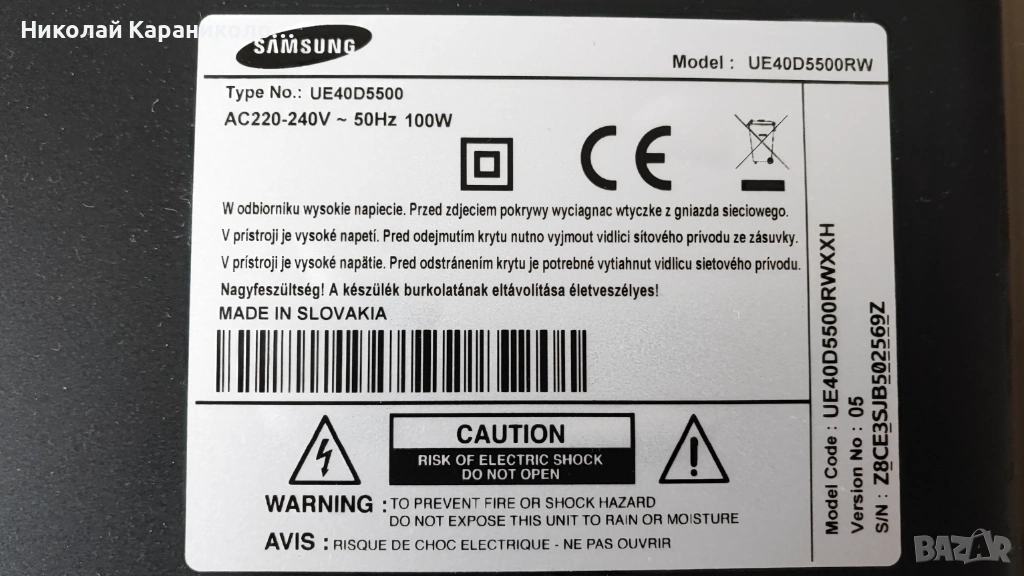 Продавам тв SAMSUNG UE40D5500 за части по причина-дефектирал Main board.Редовни съответно: