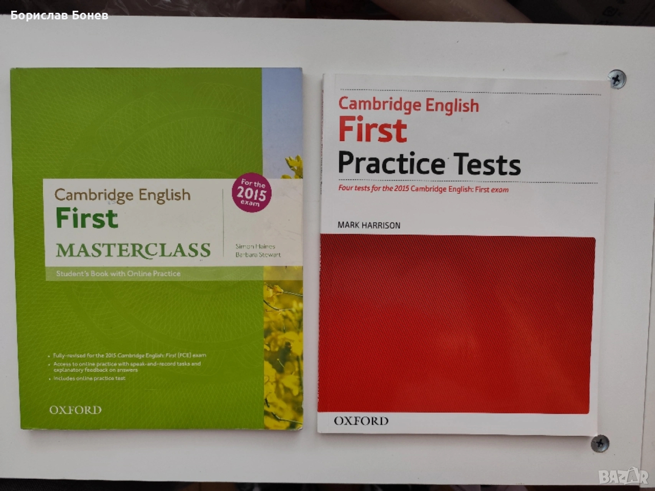 Предлагам учебникът и тетрадката с упражнителните тестове и книгата, които ще се изисква от институт “Britannica”, ако учите или сте записали детето да учи за ниво “FCE”, първото професионално ниво на английски език. Със сертификат за това ниво може да се учи и живее в англоговорящи държави, като САЩ и Великобритания.
