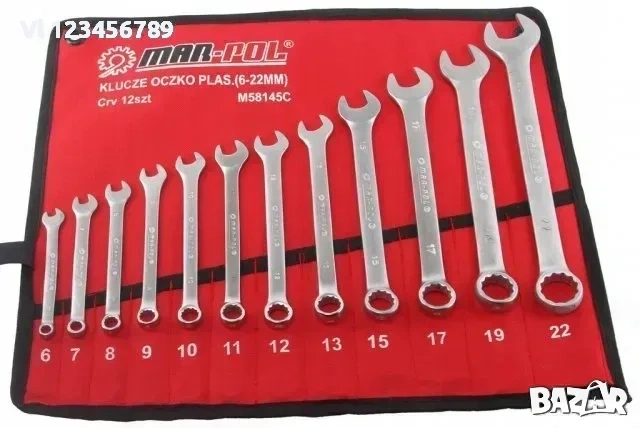 В комплекта влизат ключове с номера 6, 7, 8, 9, 10, 11, 12, 13, 15, 17, 19, 22 mm