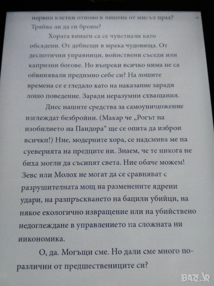 Книгата е ползвана, но работи отлично, батерията издържа много дни четене /зависи и от ползване на подсветката/.