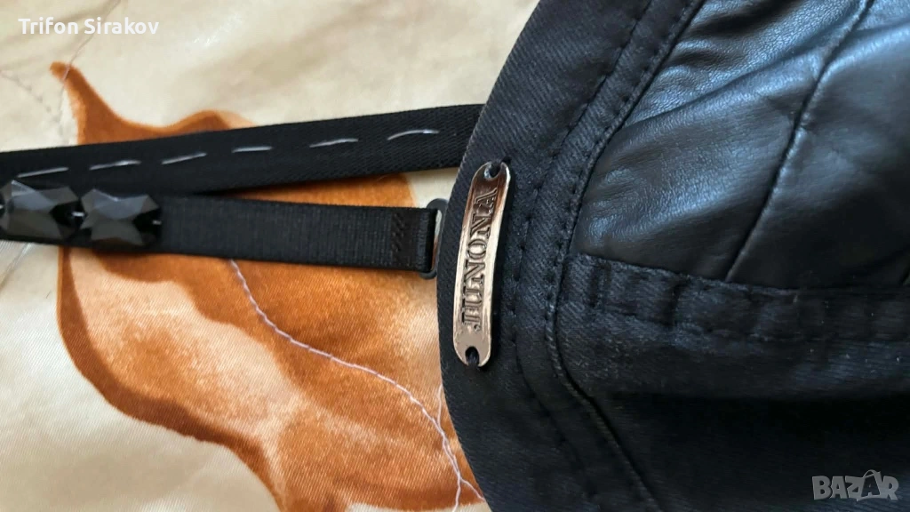 черна дамска рокля с кожени акценти и тънки презрамки, подобна на стил „коктейлна“ или „bodycon“ рокля размер S