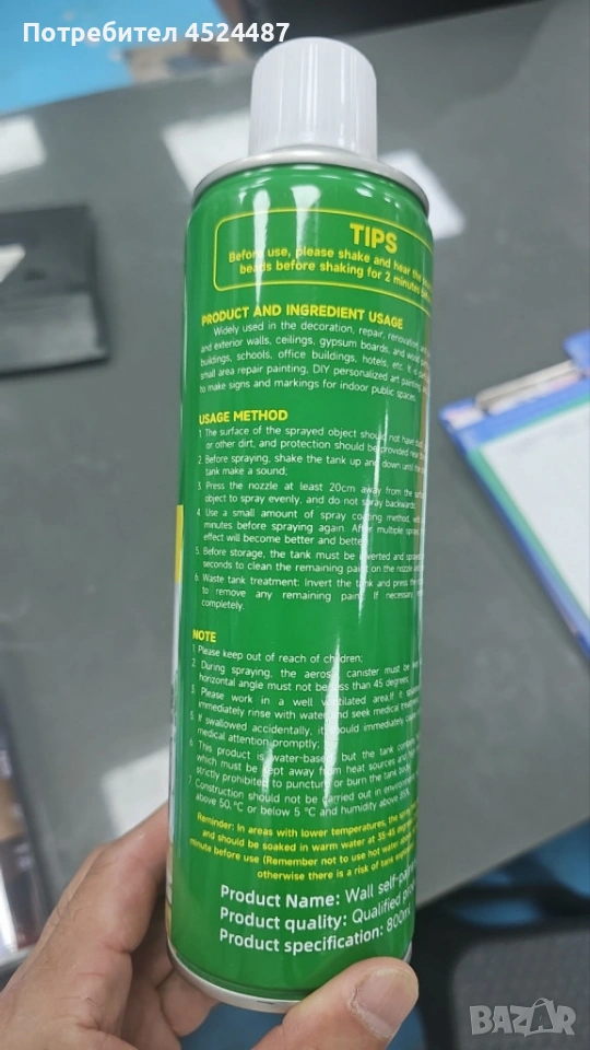 Ако стените ти са надраскани, замърсени или изгубили свежест, този спрей решава проблема за минути. Скрива петна и дефекти още при първото нанасяне, без нужда от ремонт или инструменти. Формулата е на водна основа и без мирис, което позволява безопасна употреба в затворени помещения.