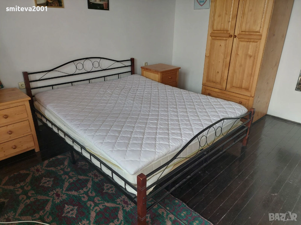 Двойно метално легло с дървени крака, снимка 1 - Спални и легла - 53848593 Двойно метално легло с дървени крака, снимка 2 - Спални и легла - 53848593 1/2