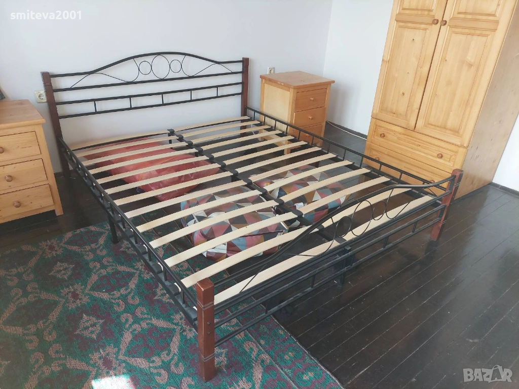 Двойно метално легло с дървени крака → Обява 53848593