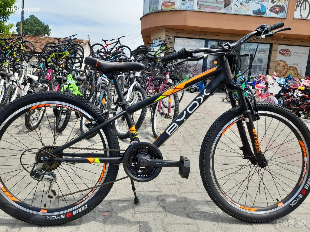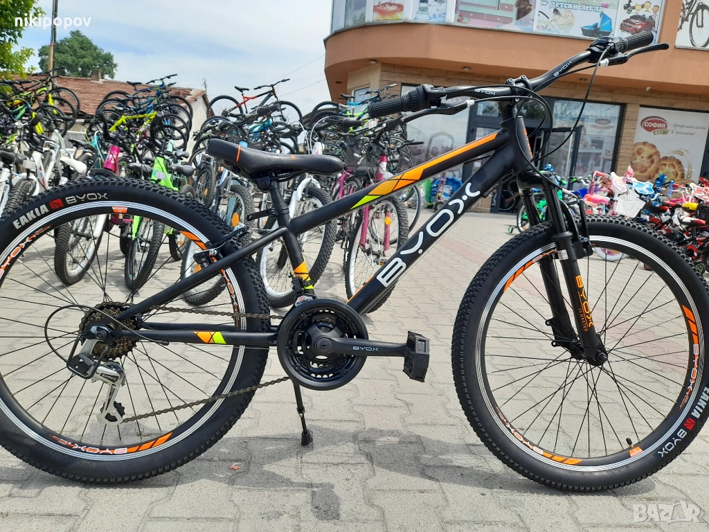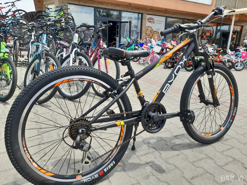 *Това е спортен MTB велосипед със Shimano скорости и преден амортисьор от Byox Bikes. Този модел е отличен избор за дете можещо да кара колело, между 8 и 12-годишна възраст и височина от 140 до 160см.