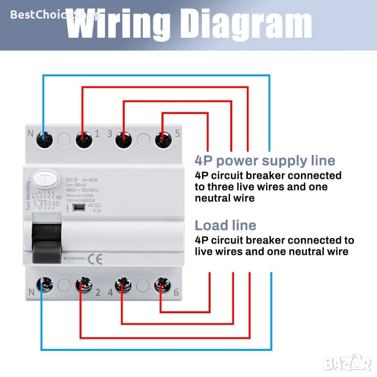 - Комбинирана защита: Тъй като това е RCCB, тя не предпазва от претоварване или късо съединение. Трябва да бъде инсталирана в комбинация с подходящи автоматични прекъсвачи (MCB).