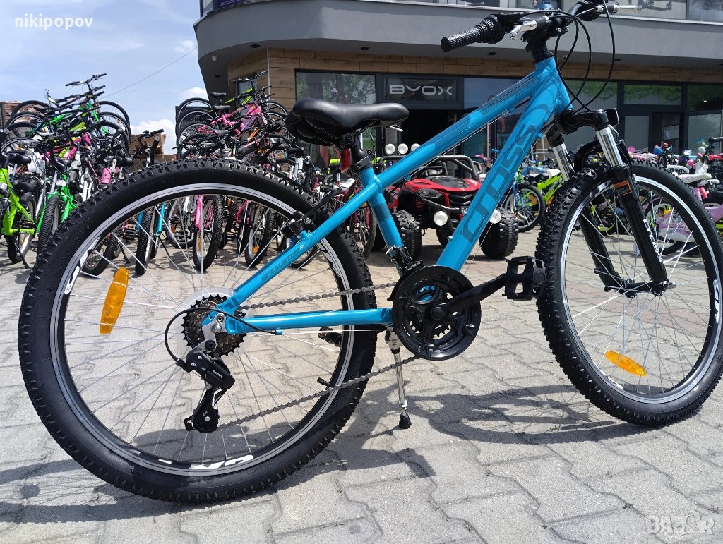 *Това е алуминиев спортен MTB велосипед със Shimano скорости и преден амортисьор от Cross Bikes. Този модел е отличен избор за дете можещо да кара колело, между 8 и 12-годишна възраст и височина от 140 до 160см.