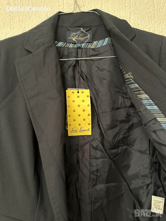 Вълнен блейзър Luisa Spagnoli, размер 40 IT, отговаря на С, от рамо до рамо - 38 см, от мишница до мишница - 44 см, дължина - 66 см, 95% сурова вълна, 5% еластан