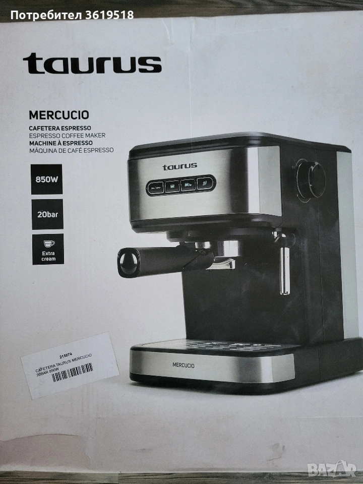 кафемашина Taurus Mercucio → Обява 53848951