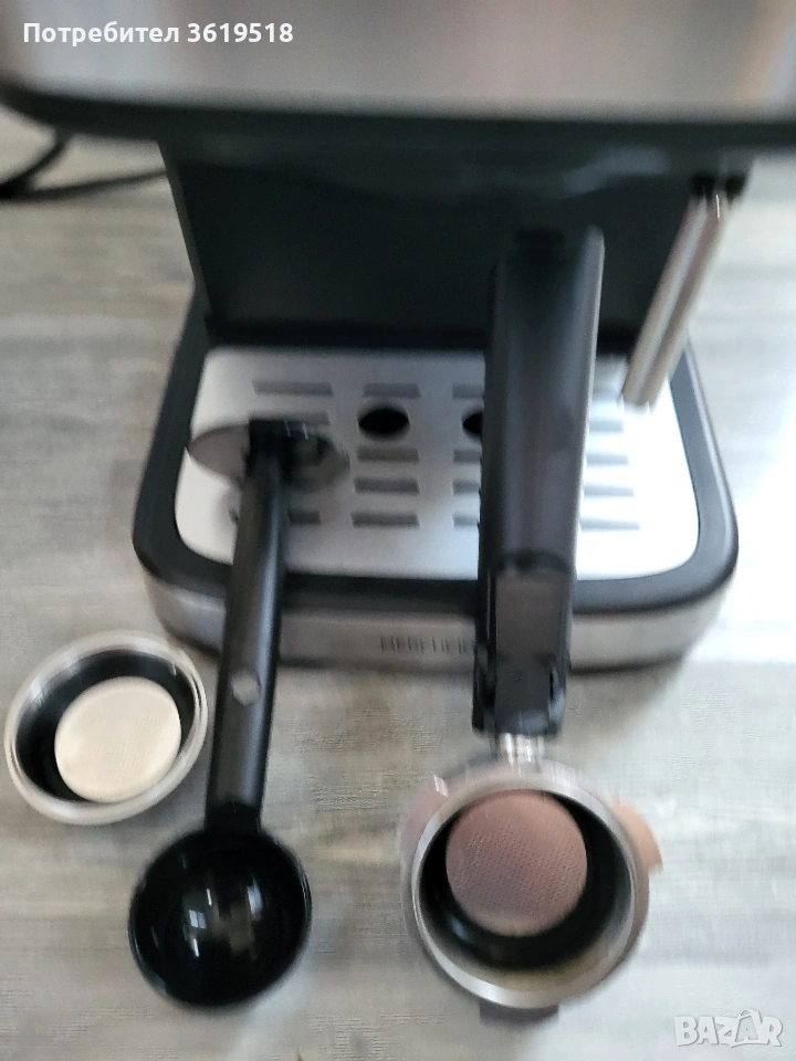 850 w. 20 bara. Ръкохватката е чисто нова с цедка за единично и двойно кафе. Всичко работи нормално
