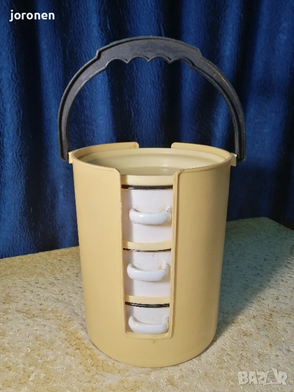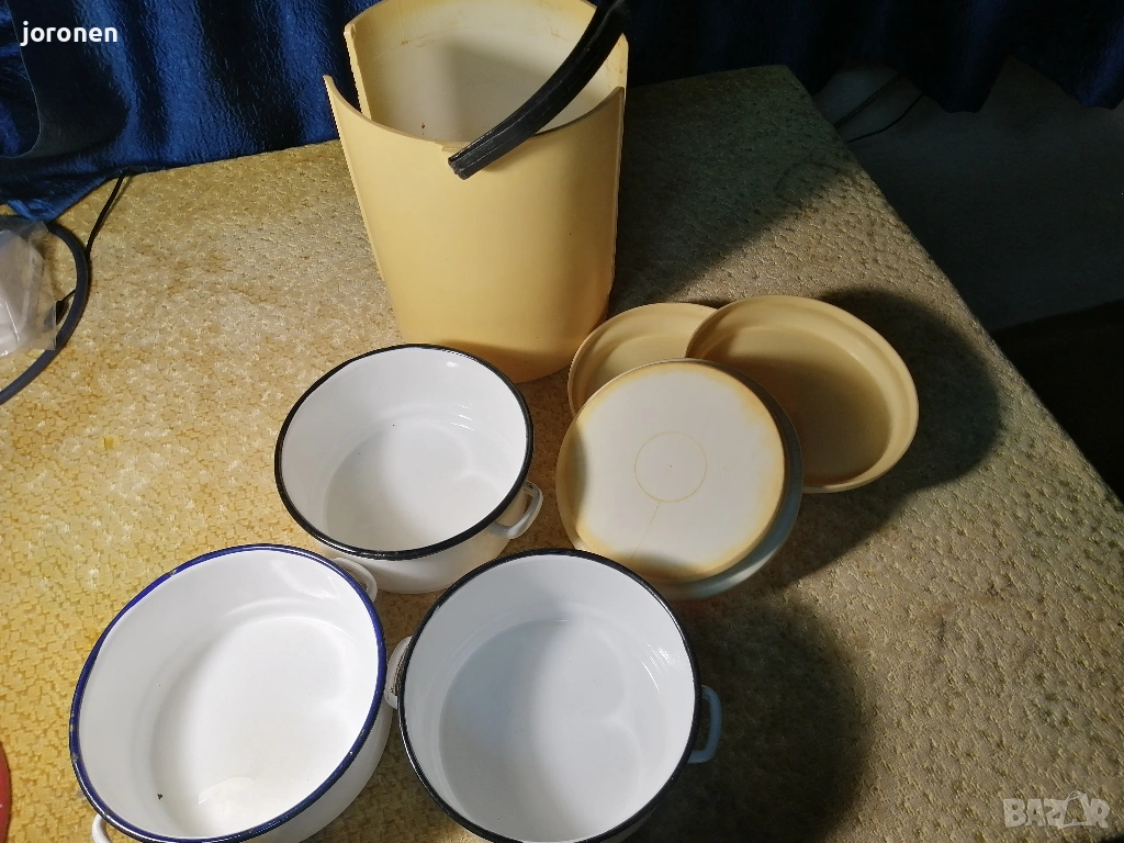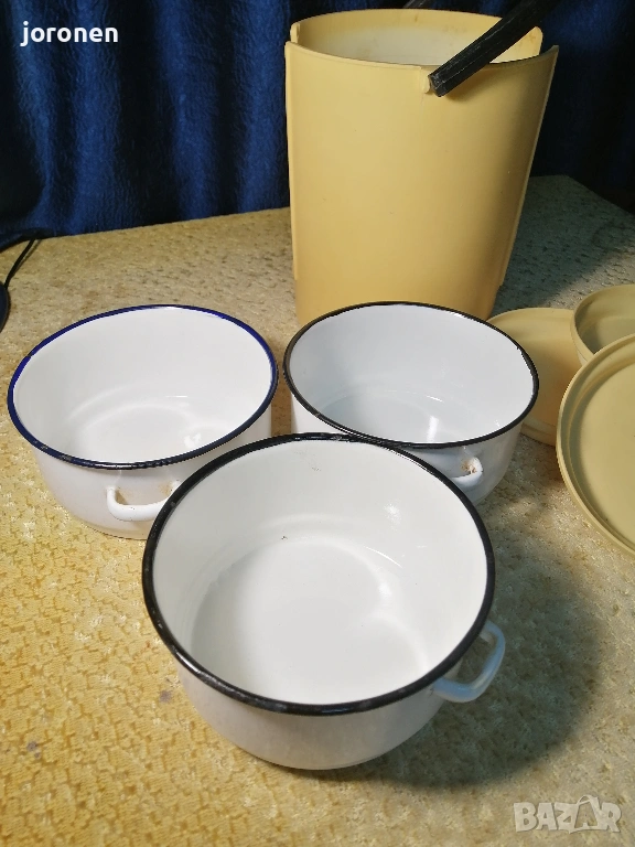 Комплект от 3 броя канчета за доставка на храна.Българско производство от 1980 г. Използвани с минимални следи от употреба.