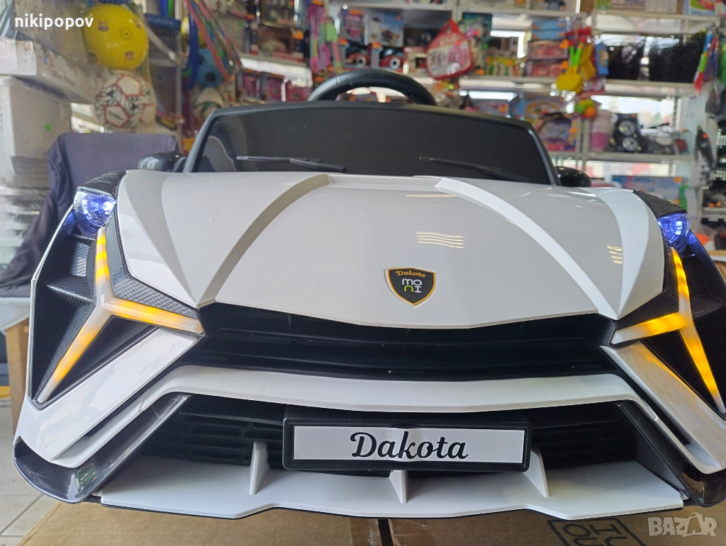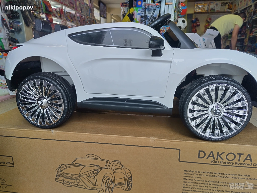 *Акумулаторната кола Dakota е с изключително красив дизайн. Всяко дете би се забавлявало много докато я кара или само докато се вози. Колата се управлява с 2.4 GHz дистанционно управление, чиито обхват е 10 метра.