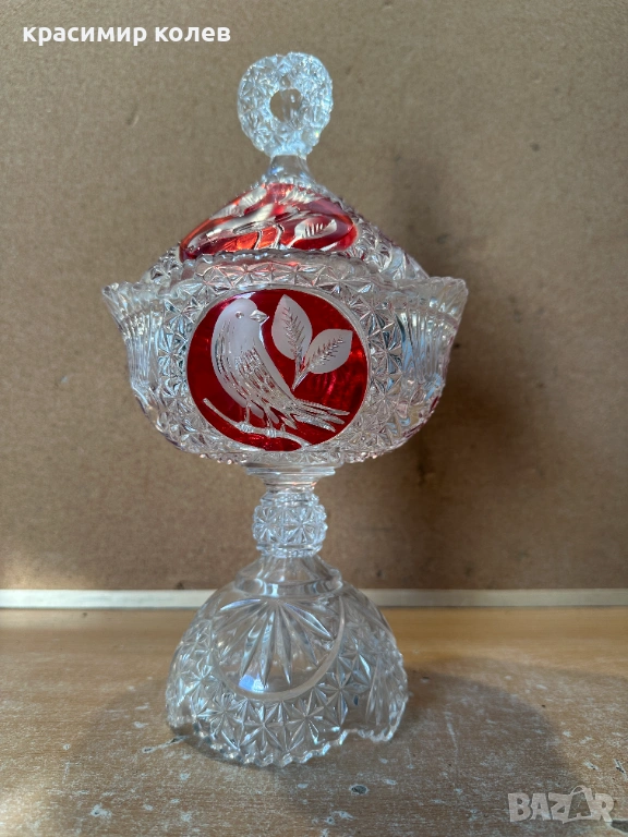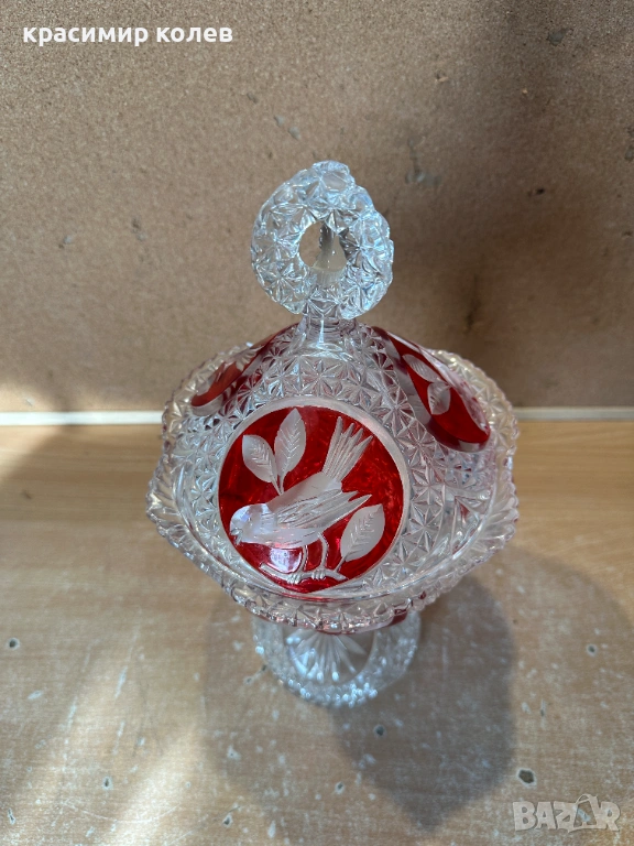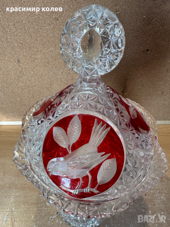 кристална бонбониера с капак от известната серия „Byrdes“ на Hofbauer Collection