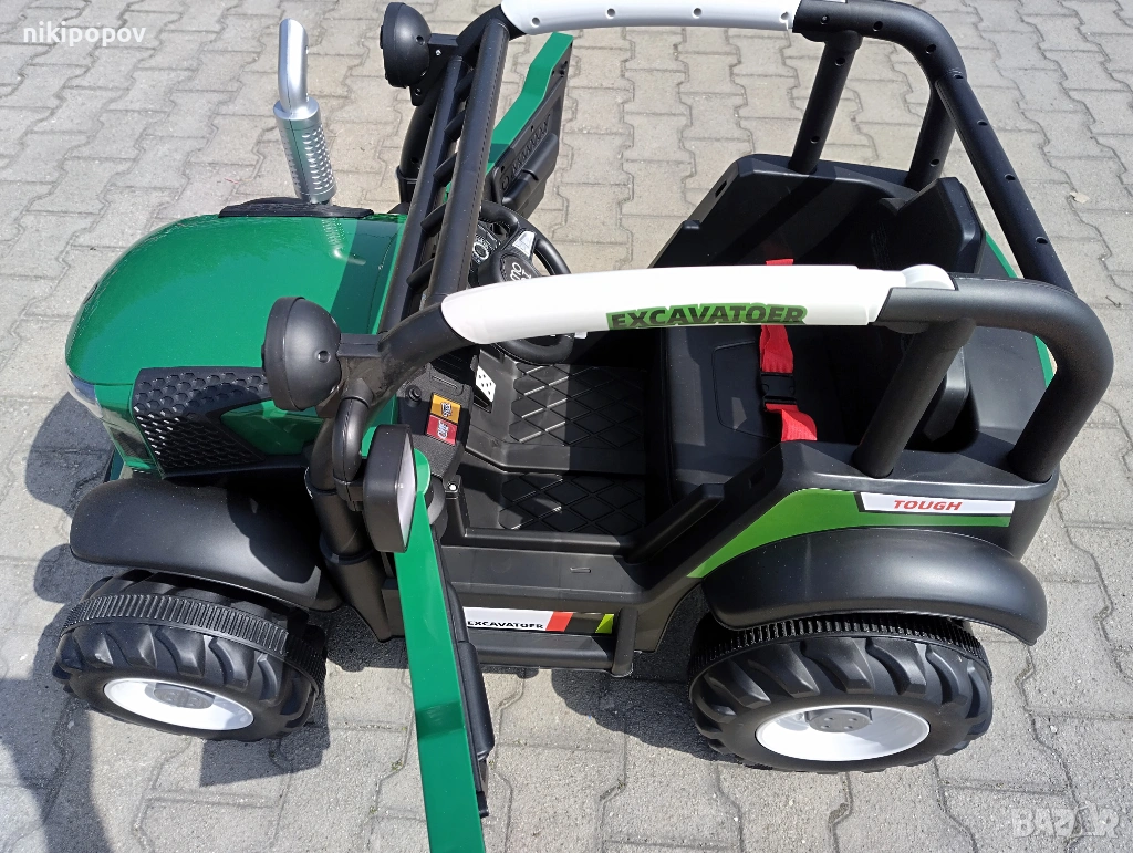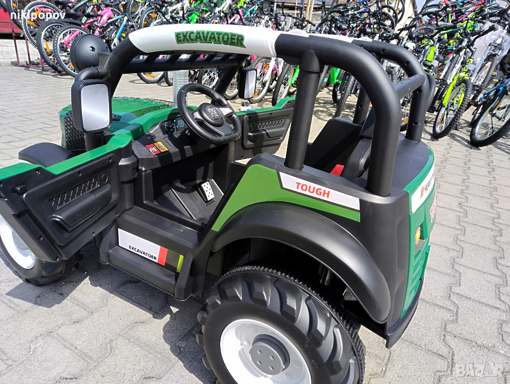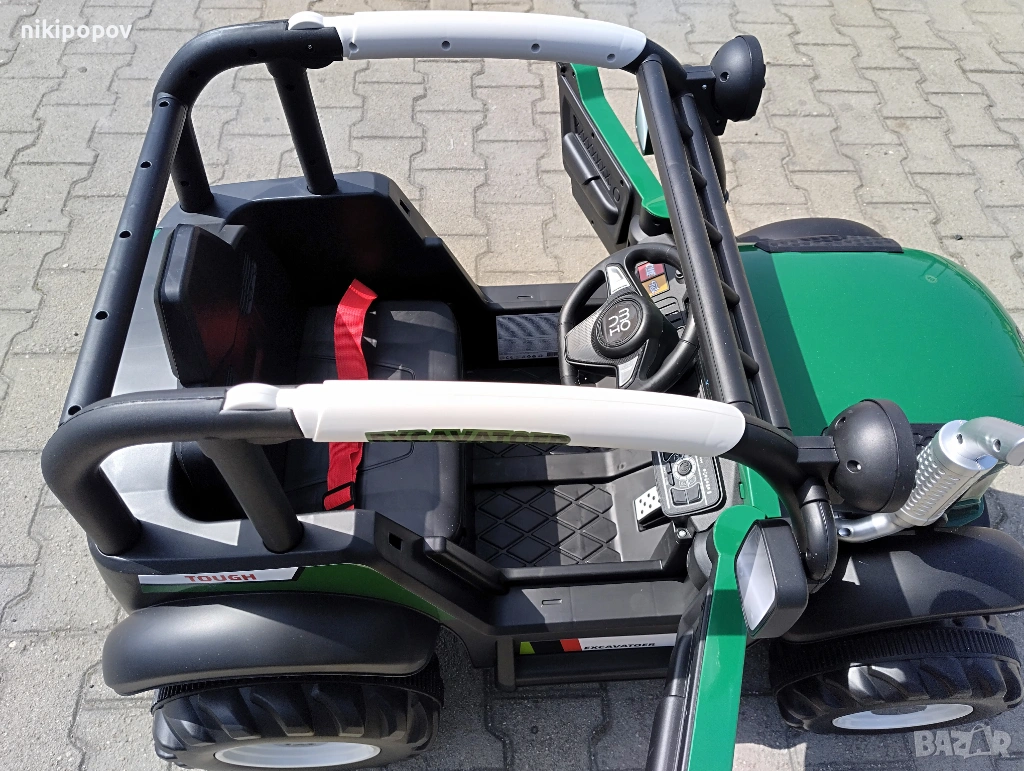 - Скорости: 3 скорости - висока, средна и ниска. Превключването на скоростите се осъществява само чрез дистанционното управление, което добавя допълнително удобство за родителите. При ръчно управление, тракторът се движи напред със скорост от около 3.5 км/ч и назад със скорост от около 3 км/ч.