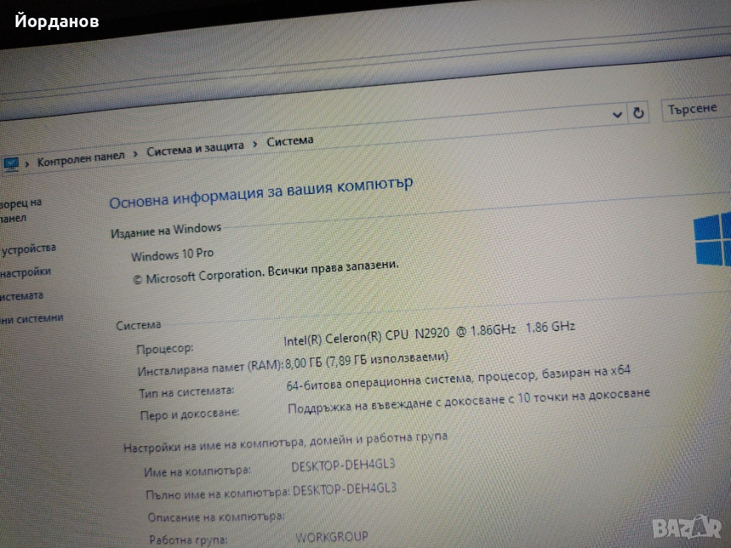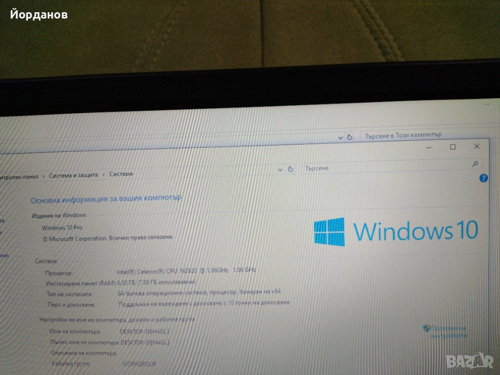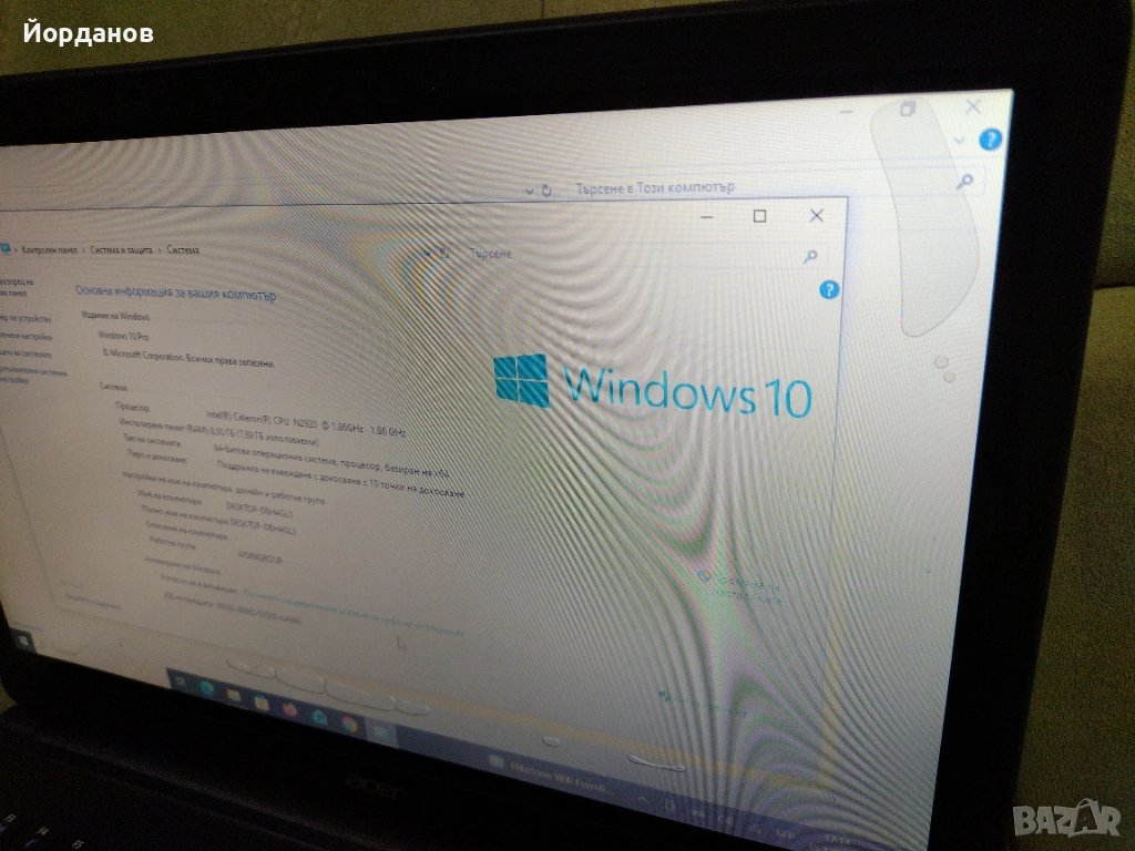 почистен и преинсталиран с Windows 10 на Български език ,качени всички необходими програми за нормална работа! включително и офис пакет!