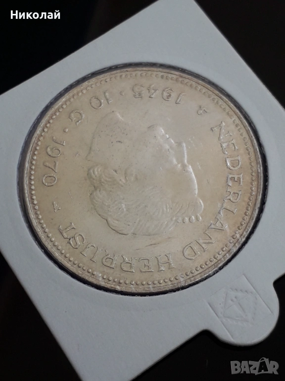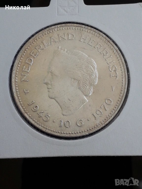 сребърна монета от 10 гулдена 1970г. Холандия → Обява 53849674