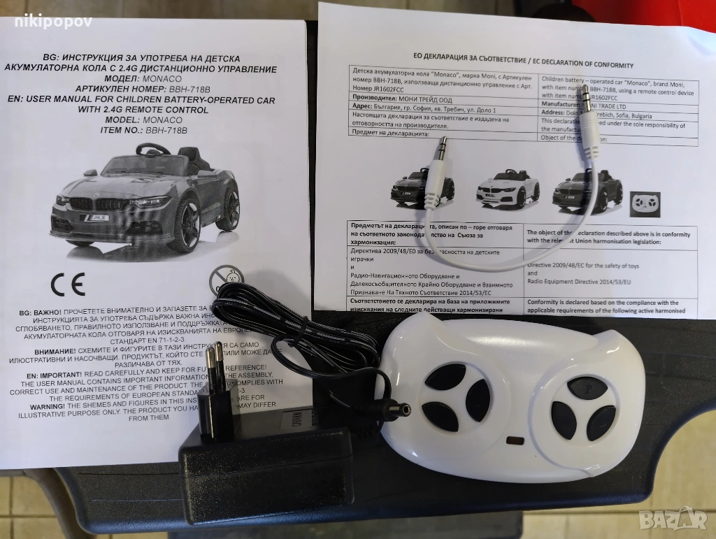 Акумулаторните играчки имат 12 месеца гаранция за фабрични дефекти на задвижващите механизми (редуктори, електромотори).