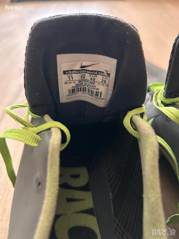 Шпайкове Nike 45 номер, използвани за кратко по време на тренировка за състезание.