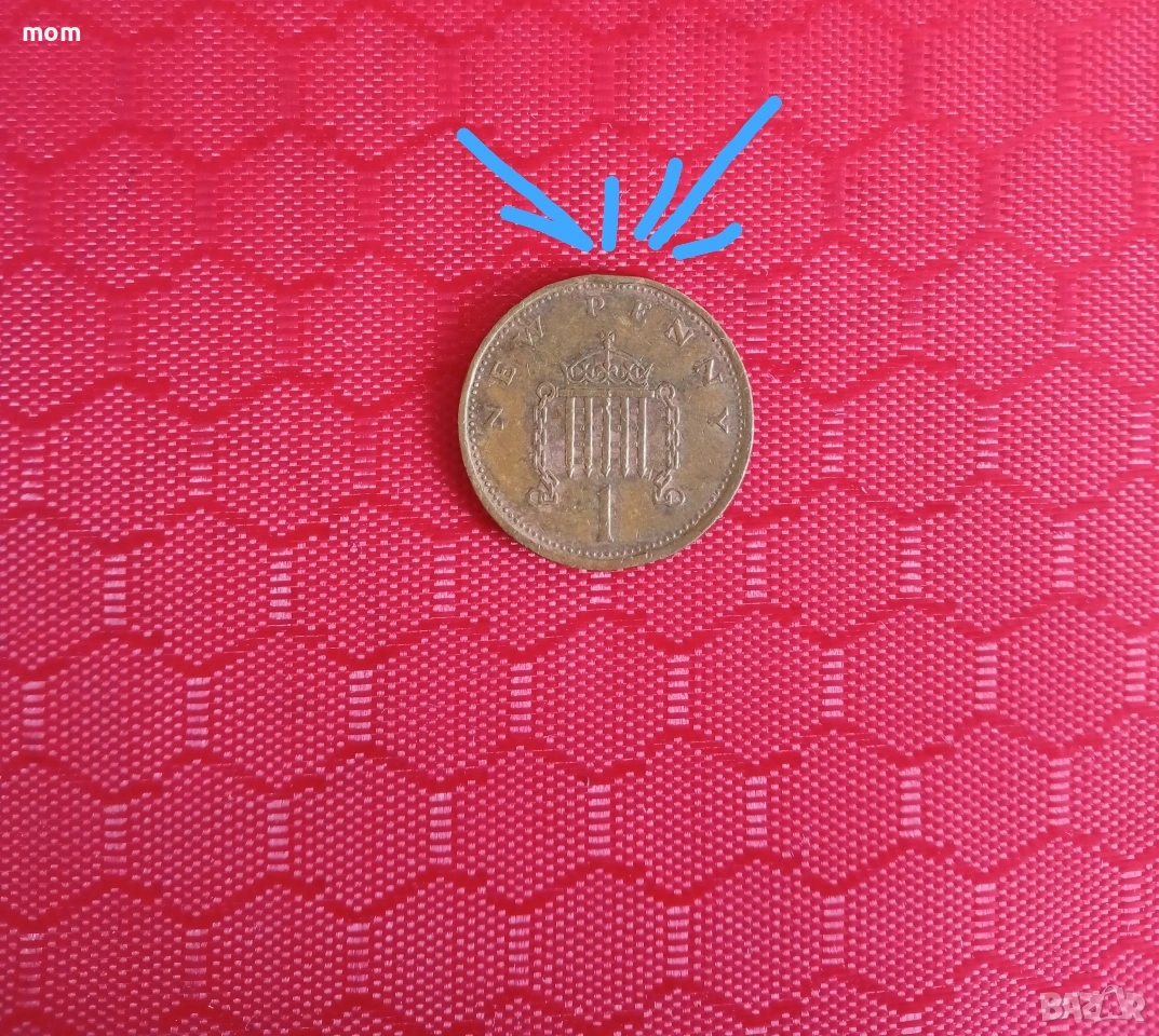 Новата стотинка с фабричен дефект от едно пени изобразяваща кралица Елизабет втора на лицевата страна на монетата- От 1971г. Е изключително рядка ,ценна и търсена след смъртта на Кралица Елизабет!