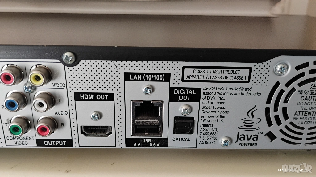1× оптичен цифров аудио изход