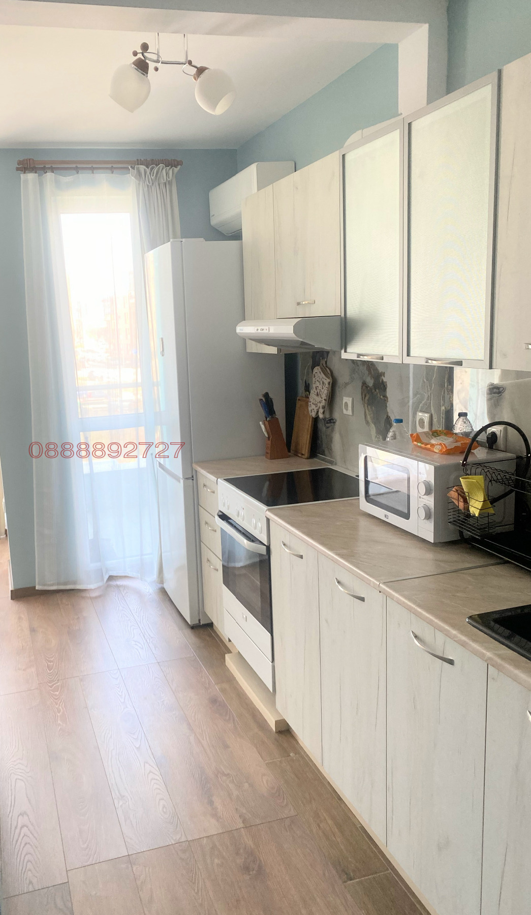 Състояние: напълно обзаведен с нови мебели, нови електроуреди, нови хиперинверторни климатици. Нова баня - душкабина, PVC шкафове с мивка, моноблок, пералня.