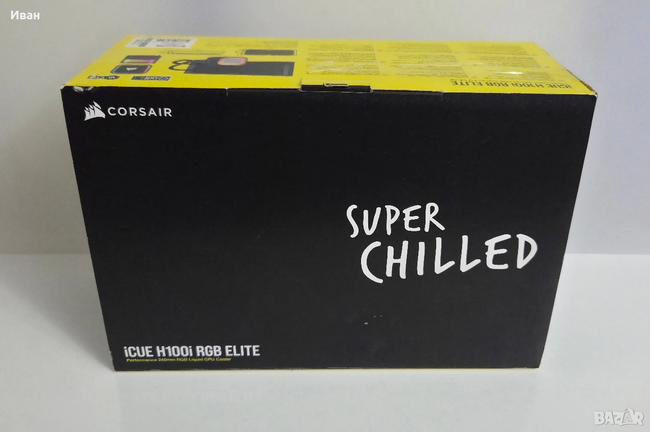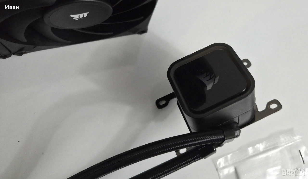 Продавам водно охлаждане Corsair iCUE h100i Elite RGB 240mm. Охлаждането е ползвано доста малко като е демонтирано преди 6 месеца изчистено основно и прибрано. Налични крепежи.