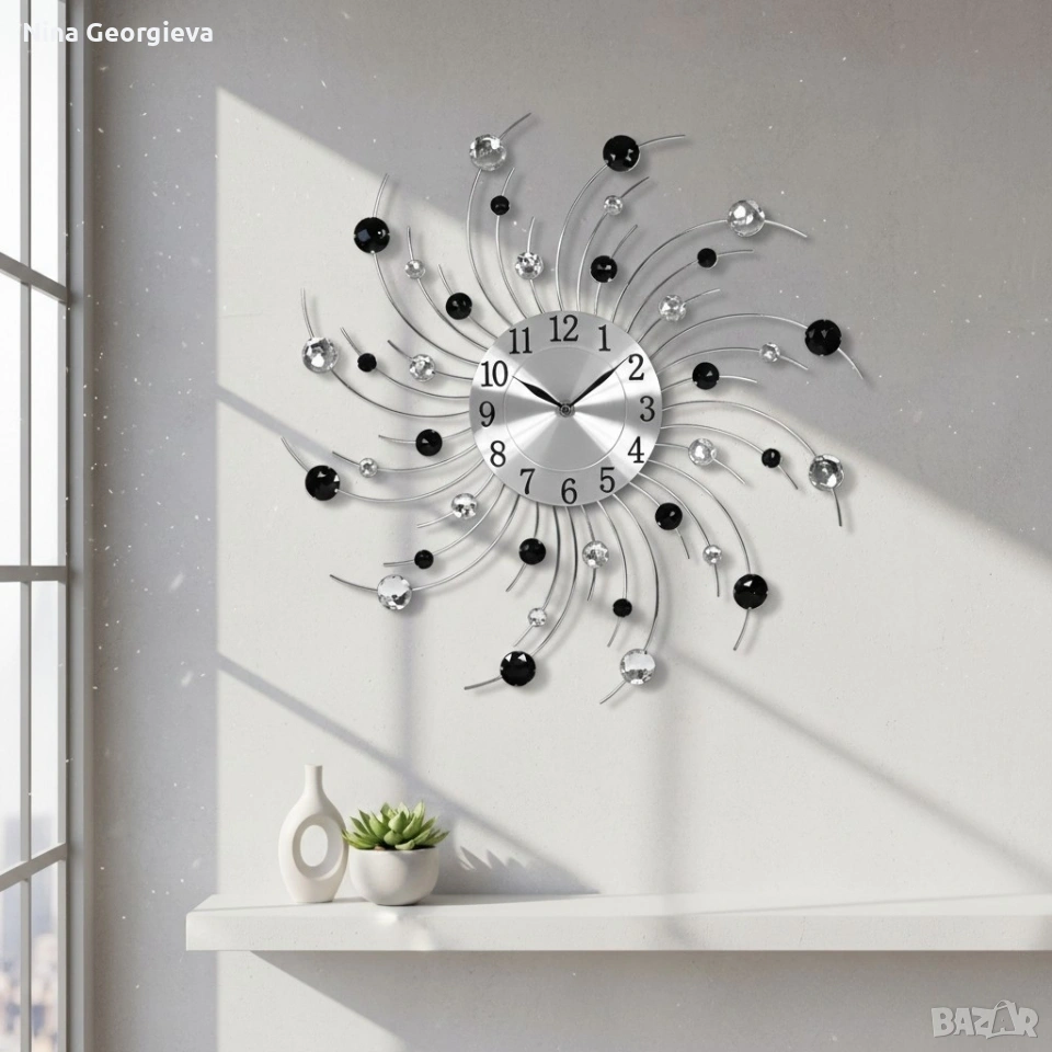 Модерен декоративен стенен часовник с кристали, 50 см