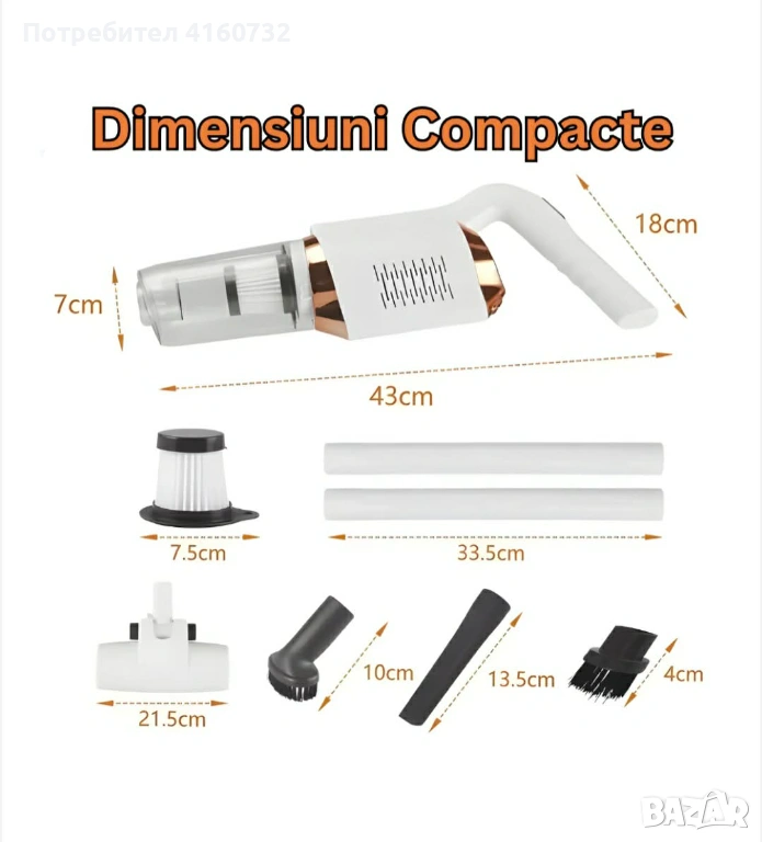 Вертикална безжична прахосмукачка подходяща за кола, под, килими, завеси → Обява 53851862