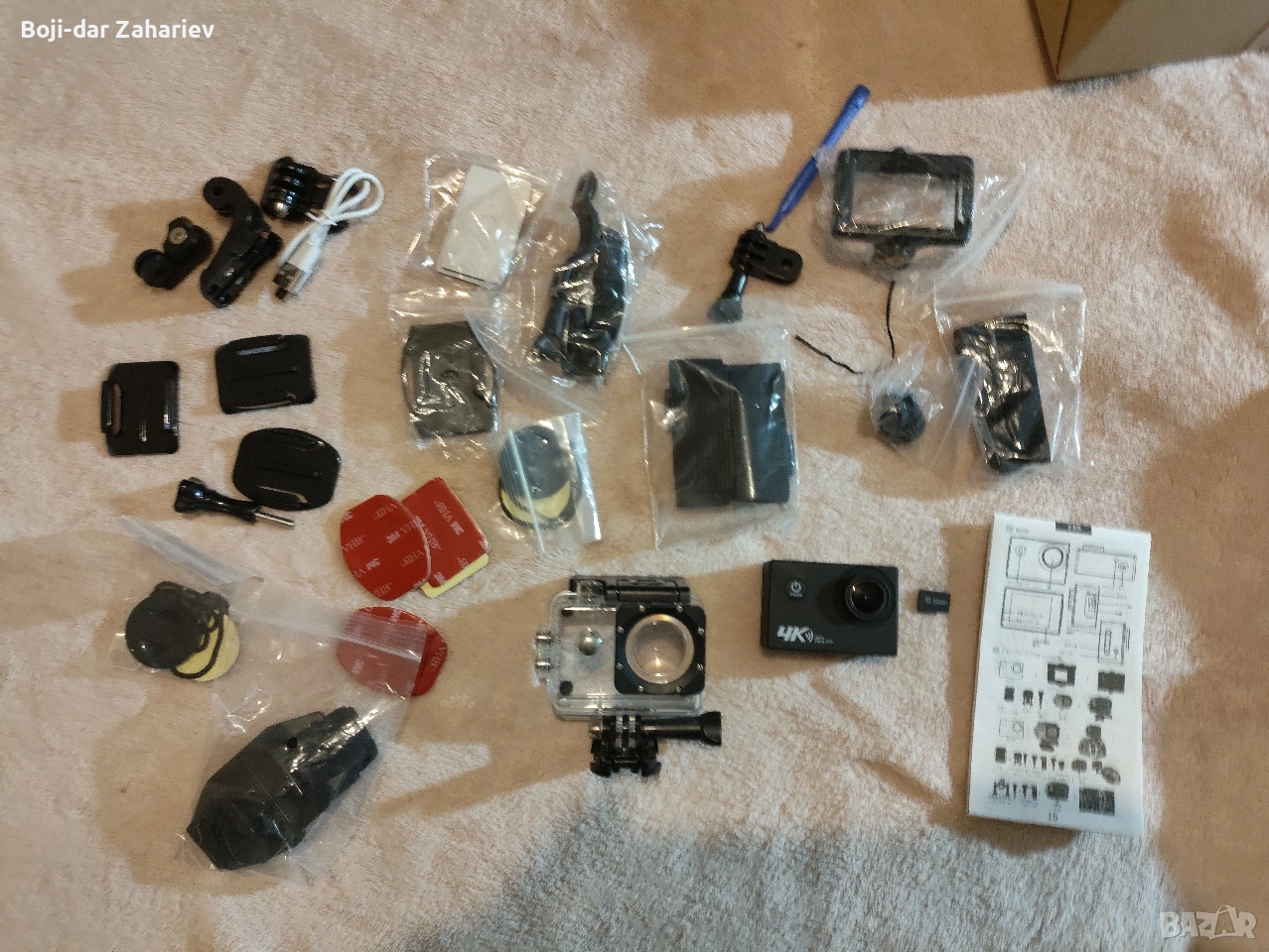 Какво получавате в комплекта (всичко от снимките): Екшън камера Ausek AT-Q1.
